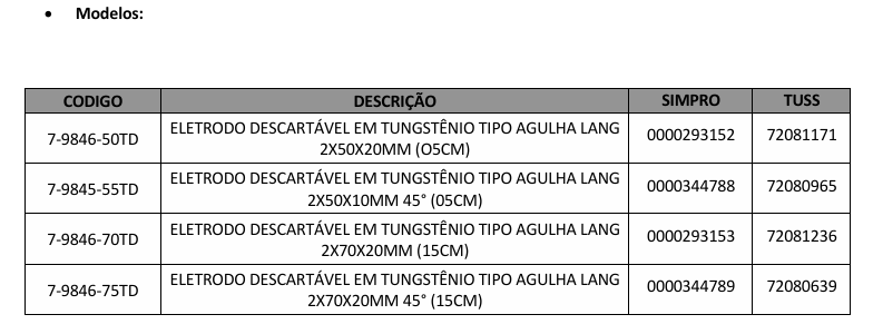 Material de alta resistência, aço AISI 304 revestido com nylon 10 e com a ponto do eletrodo em tungstênio.